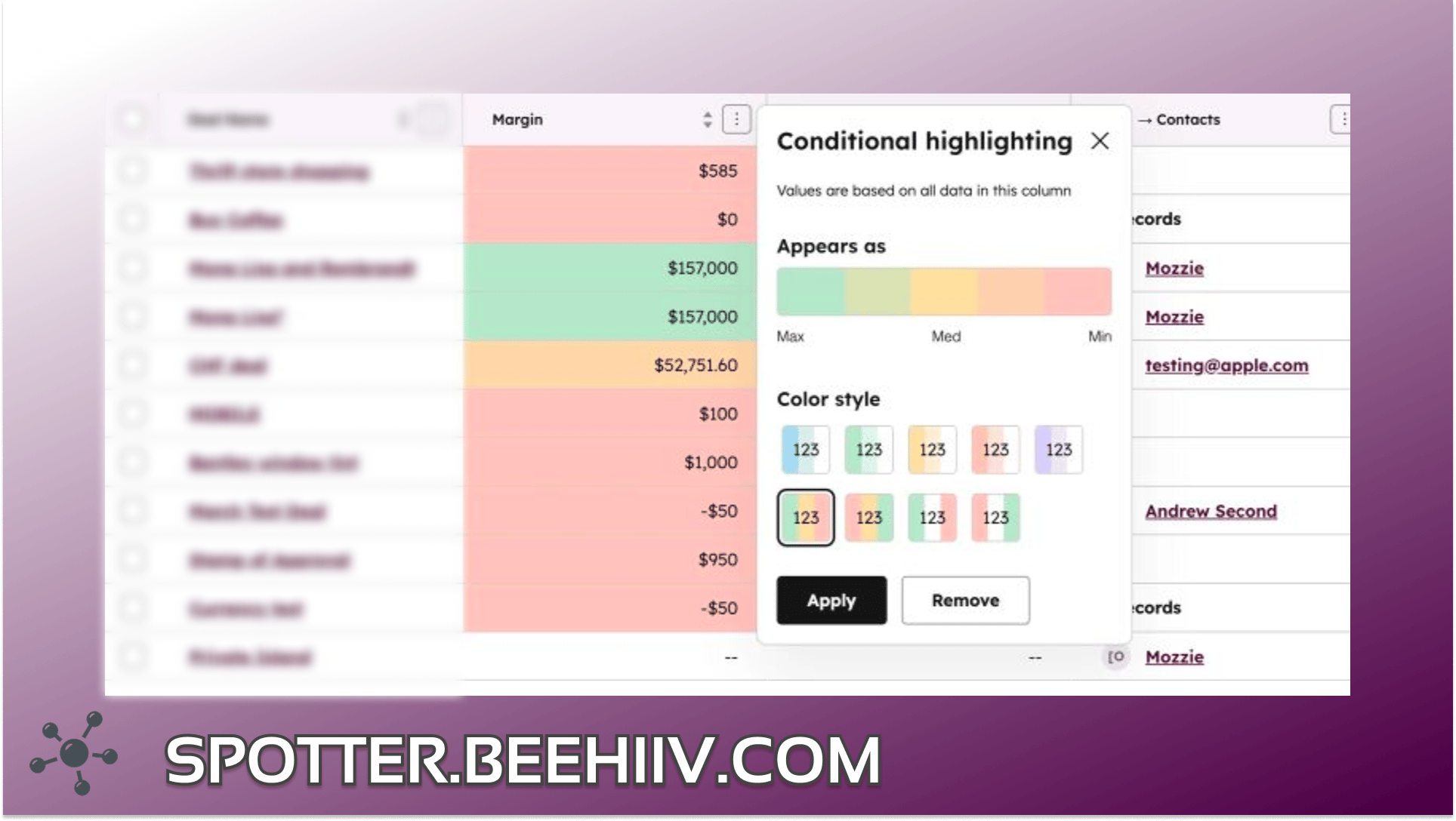 HubSpot allows you to automatically color-code values in your #Deals table based on specific criteria. Instead of reading numbers, you’re reading colors.