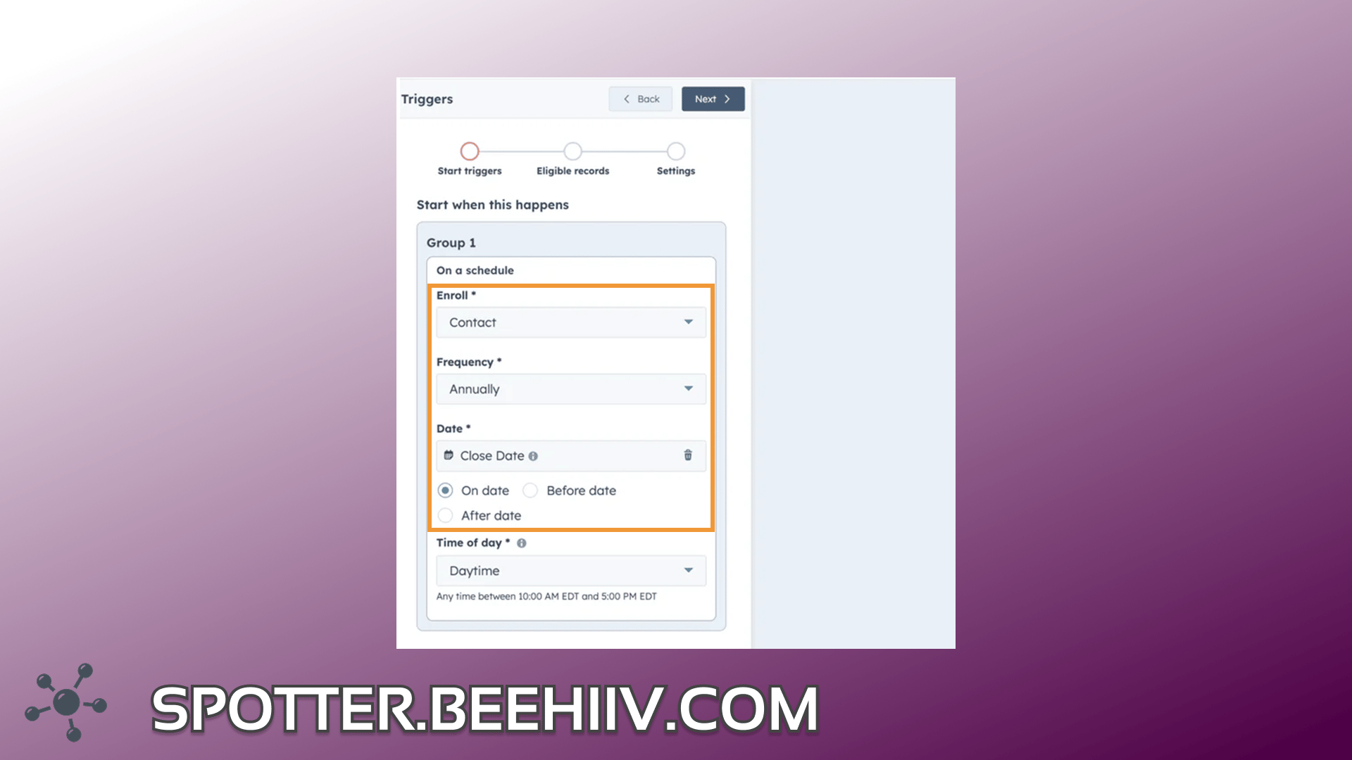 Now, we have an anniversary trigger which takes care of that. See how it’s configured below.