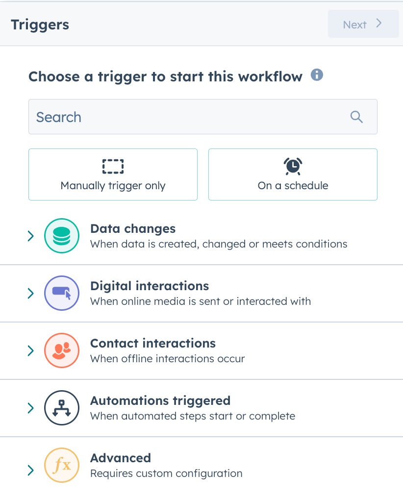 In: Choosing event-based, filter-based, manual enrollment, etc. from the get-go, and switching object without needing to make a new workflow.